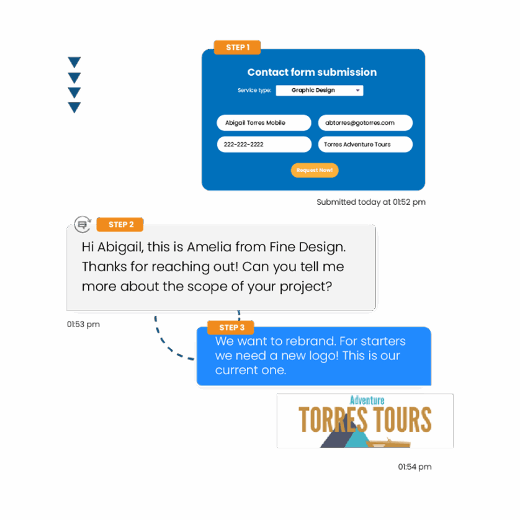 Turn common events into automatic SMS touchpoints: new leads, appointments, payments, status changes, and more. Build simple, rules-based flows that send the right text and follow-ups without manual work.